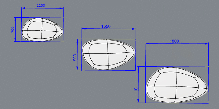 New for 2026, Pebble Benches are asymmetric and come in three sizes. The three sizes allow them to be used in a natural feel like scattered stones on the beach. The height reduces through the sizes from 450mm to a kids 350mm height.